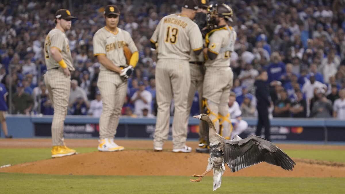 Good Luck Goose Causes Delay At Padres Dodgers Playoff Game Kpbs Public Media